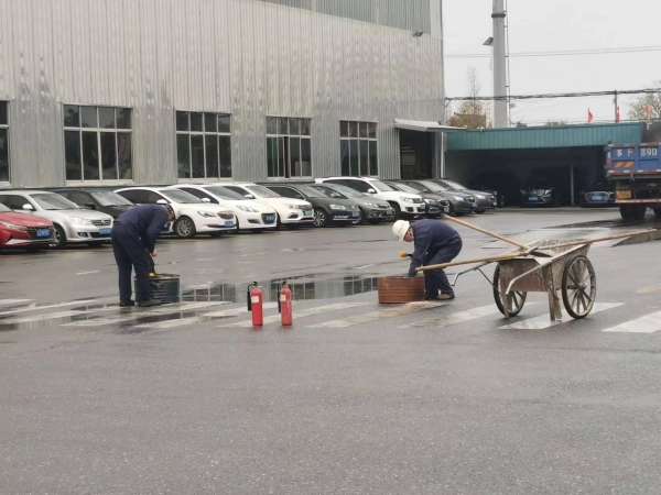 其中既讓新員工親身實踐了如何使用滅火器、沙土、消防栓噴水等針對不同情況進行了滅火實際操作,